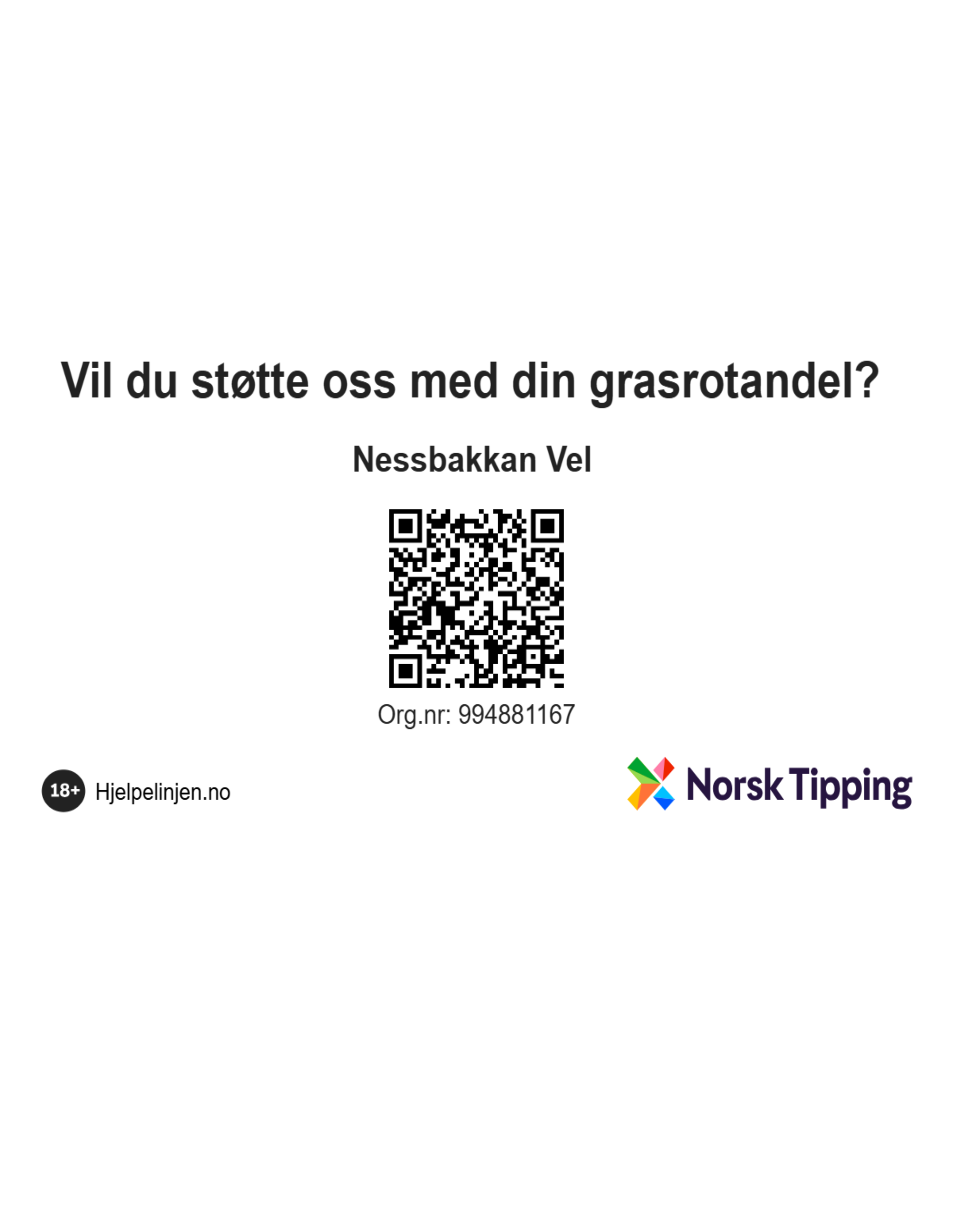 Sett Nessbakkan Vel som grasrotmottaker ved spill hos Norsk Tipping: